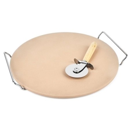 Kamień do pizzy 33 cm ze stojakiem i radełkiem marki Konighoffer. Idealny do przyrządzania i serwowania pizzy.