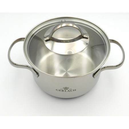 Garnek Viva wykonany z wysokiej jakości stali nierdzewnej 18/10, trójwarstwowe dno zapewnia równomierną dystrybucję ciepła oraz długotrwałą funkcjonalność. Poręczna skala ułatwia odmierzanie płynów, szklana pokrywka gwarantuje komfort podczas gotowania.