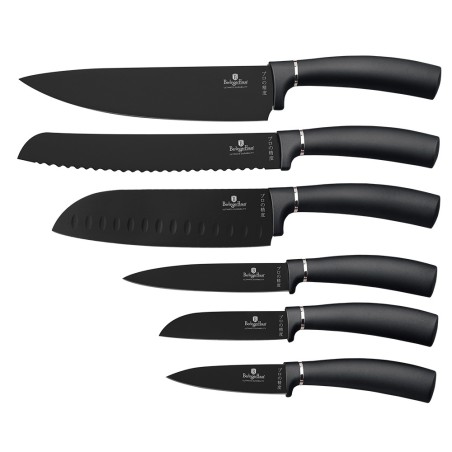 Zestaw 6 eleganckich noży kuchennych firmy Berlinger Haus. Noże przeznaczone są do porcjowania mięsa i ryb, krojenia chleba, obierania i siekania warzyw i owoców.