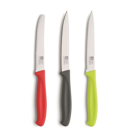 Zestaw 3 noży uniwersalnych marki Richardson Sheffield to kolorowy i niezwykle praktyczny komplet ostrzy do codziennych zadań. Dzięki lekkim, ergonomicznym rękojeściom z wytrzymałego tworzywa, noże są niezwykle poręczne i łatwe w czyszczeniu.