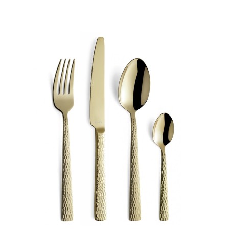 Zestaw sztućców na 6 osób z kolekcji Felicity marki Amefa w eleganckim, szampańskim wykończeniu to propozycja dla osób, które cenią nowoczesny design i wyrazisty styl stołu. Kolekcję charakteryzuje wykończenie na wysoki połysk w połączeniu z dekoracyjnym młotkowanym zdobieniem na uchwycie które przyciąga uwagę subtelną strukturą i grą światła.