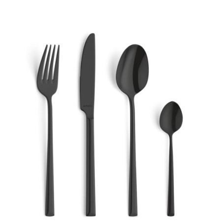 Zestaw sztućców Metropole Amefa 24 elementy na 6 osób czarne. Modernistyczne, najwyższej jakości, z kolekcji Amefa Premiere. Zestaw sztućców o smukłej, eleganckiej linii. Oryginalny design, z ekstrawagancko „uciętymi” końcami rękojeści. Idealny na prezent. Sztućce polerowane.