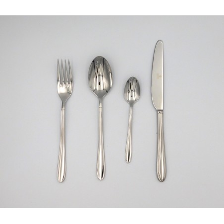 Uroki sztućców Bella zaklęte są w ich nazwie. Bella to ponadczasowe piękno. Na pierwszy rzut oka model bardzo oszczędny, ale ozdobiony zmysłowymi szczegółami. Księżycowy połysk stali rozświetli każdą aranżację stołu. Spotkania w gronie najbliższych staną się sztuką, głęboko zakorzenioną w elegancji oraz radości jaką niesie wspólne spożywanie posiłków. Sztućce wykonane z najwyższej jakości stali nierdzewnej 18/10. Polerowane na wysoki połysk.
