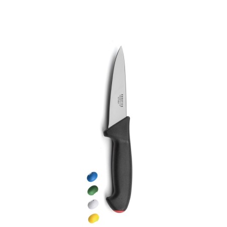 Seria Pro Tech to noże zarówno do domów jak i do gastronomii. Ten zestaw noży jest wyposażony w wymienne kolorowe końcówki rękojeści, dzięki czemu można szybko znaleźć odpowiedni nóż w szufladzie, jak również określić ich przeznaczenie - mięso, warzywa