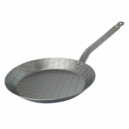 Patelnia DE BUYER MINERAL B ELEMENT do steków 24 cm to doskonały wybór dla miłośników idealnie usmażonego mięsa i warzyw. Wykonana z grubej stali węglowej, z czasem rozwija naturalną, nieprzywierającą powłokę, która wzmacnia smak potraw.