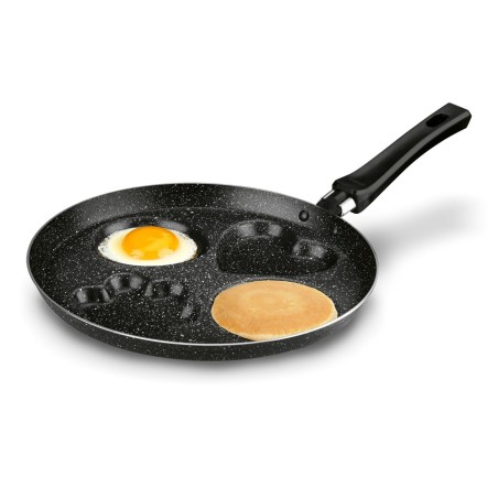 Równomiernie je zarumieni, a do wyboru masz aż 4 zagłębienia w 3 kształtach. Serduszko na romantyczne śniadanie, kwiatek dla urozmaicenia na talerzu i dwa klasyczne, okrągłe zagłębienia na co dzień. Jest też lekka i poręczna, ponieważ to patelnia aluminiowa.