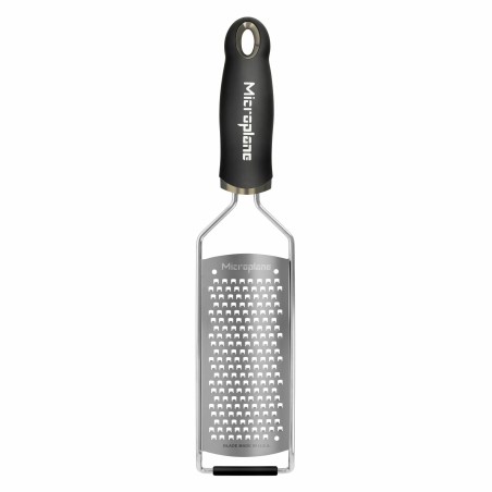 Tarka Coarse Microplane z kolekcji Gourmet to niezbędne narzędzie dla każdego, kto potrzebuje uzyskać równomierne, małe wiórki z twardych składników z minimalnym wysiłkiem. Dzięki szerszej powierzchni trącej i legendarnemu ostrzu Microplane, jest to idealna tarka do twardego sera i świeżych warzyw. Ostrze typu Coarse (grube oczko) zostało wyprodukowane w USA ze stali nierdzewnej, z wykorzystaniem przełomowej technologii fototrawienia. Krawędzie tnące zachowują się jak ultra-ostre noże, które precyzyjnie kroją, a nie szarpią i nie miażdżą składników, dzięki czemu zachowują one pełnię smaku i aromatu.